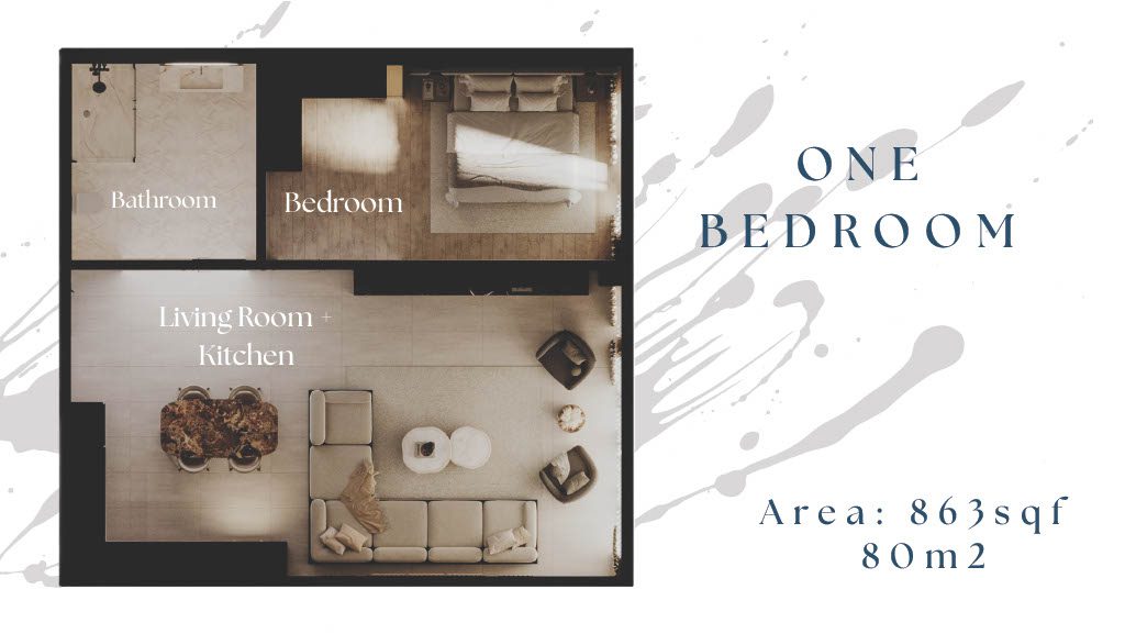 The projected consist for 6 Block aligned together i.e BLOCK A, B, C, D, E & F. The 1 BR units are on the middle Blocks i.e BLOCK C & D. The floor size is 863 sqft / 80 sqm. The selling prices increases by Kshs. 250,000 per floor.